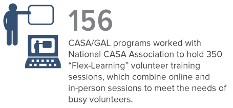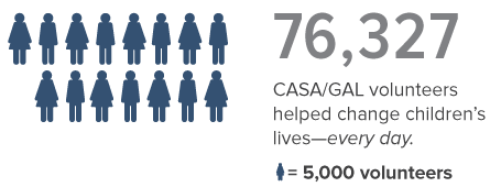 We have undertaken these efforts and will continue to do so because we firmly believe that our work will ultimately lead to safety, permanency and the opportunity to thrive for every abused and every neglected child. As you read through this annual report, know that you—our dedicated state and local program staff, committed volunteers, stakeholders, generous partners, and donors—played a critical role in everything that we have been able to accomplish.