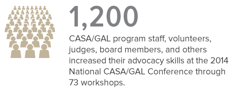 2014 marked the beginning of an important, transformative journey for National Court Appointed Special Advocate Association, as we developed and launched a new roadmap for our future. We introduced to our member programs and partners a strategic framework intended to govern our future planning. It will direct and focus our activities on new and innovative strategies to more effectively accomplish the mission and vision of the CASA/guardian ad litem (GAL) network.